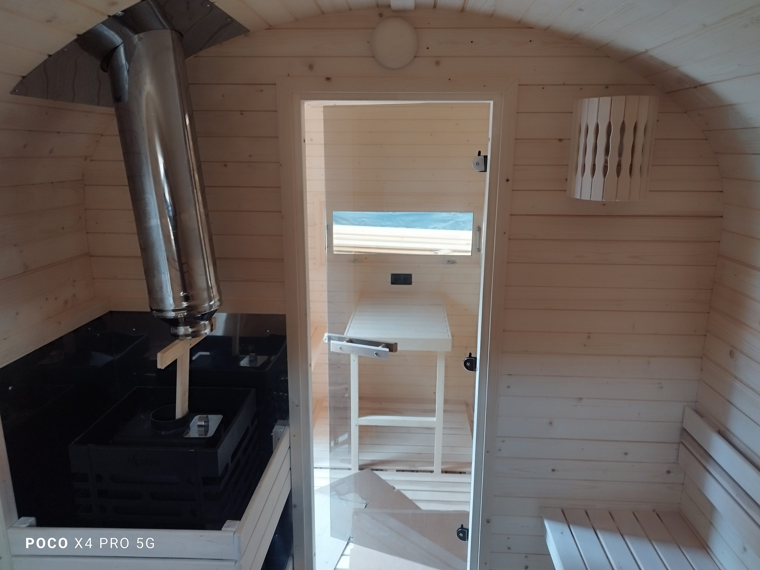 • Комплект дымохода: труба из нержавеющей стали ф 115 мм длиной 1000 мм + сэндвич труба длиной 1000 мм + зонт оголовок. Нержавеющая пластина на потолок.