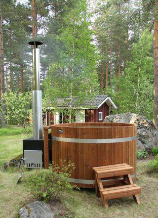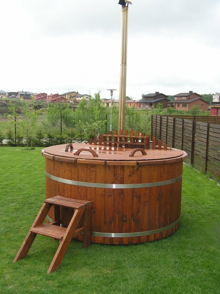 Купель с подогревом воды в чистом дереве без вставки на 1,6 м с наружной печкой