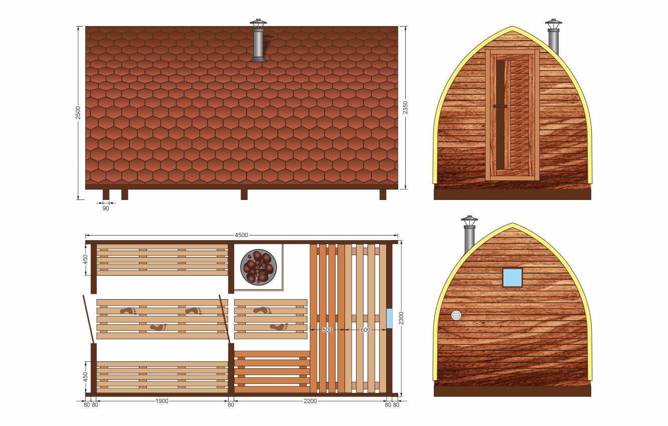 Края бани защищены полукруглыми отливами, это предотвращает попадание дождя и снега на самые уязвимые места бани